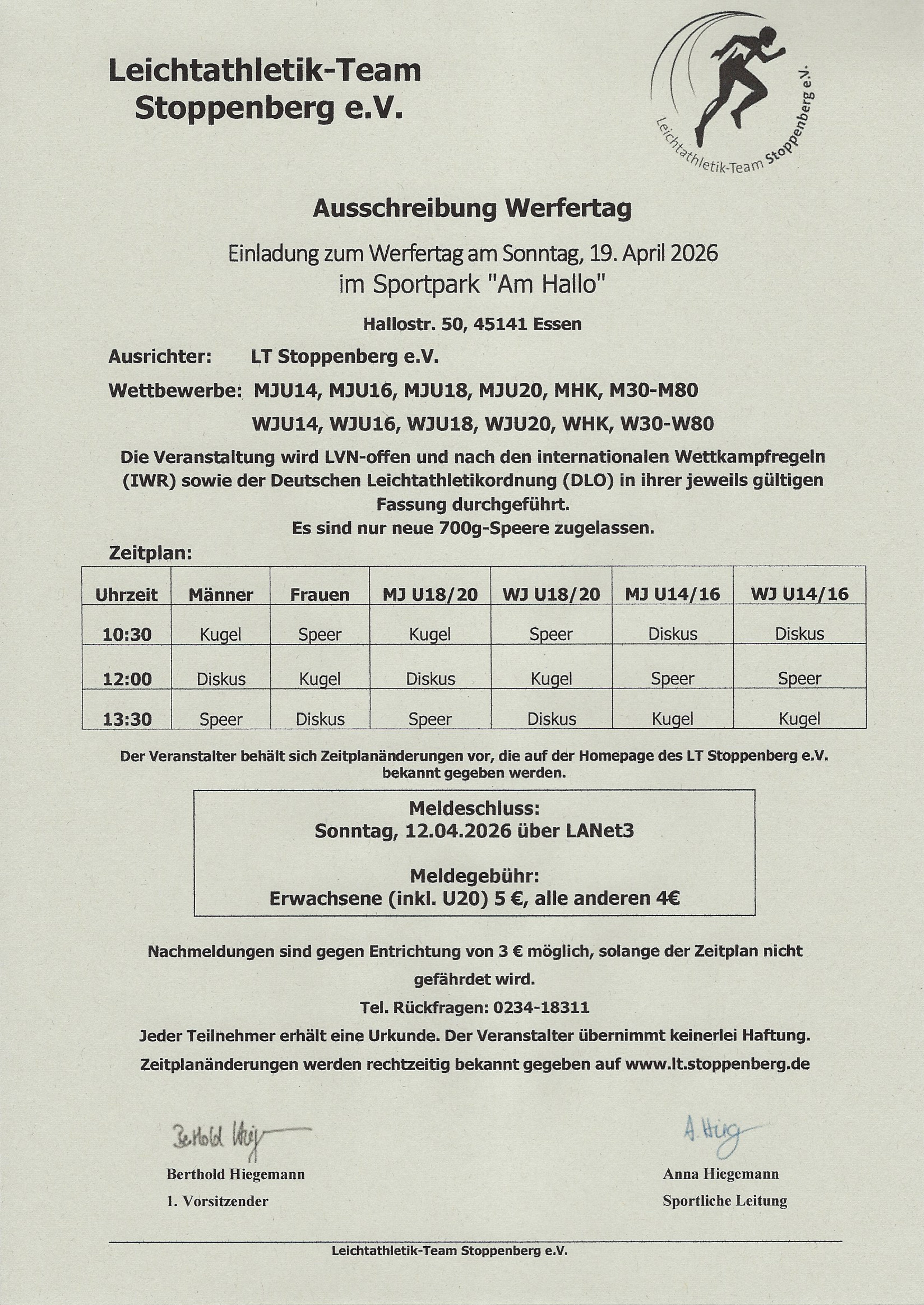 Die Ausschreibung als PDF zum Download gibts hier: Ausschreibung Werfertag