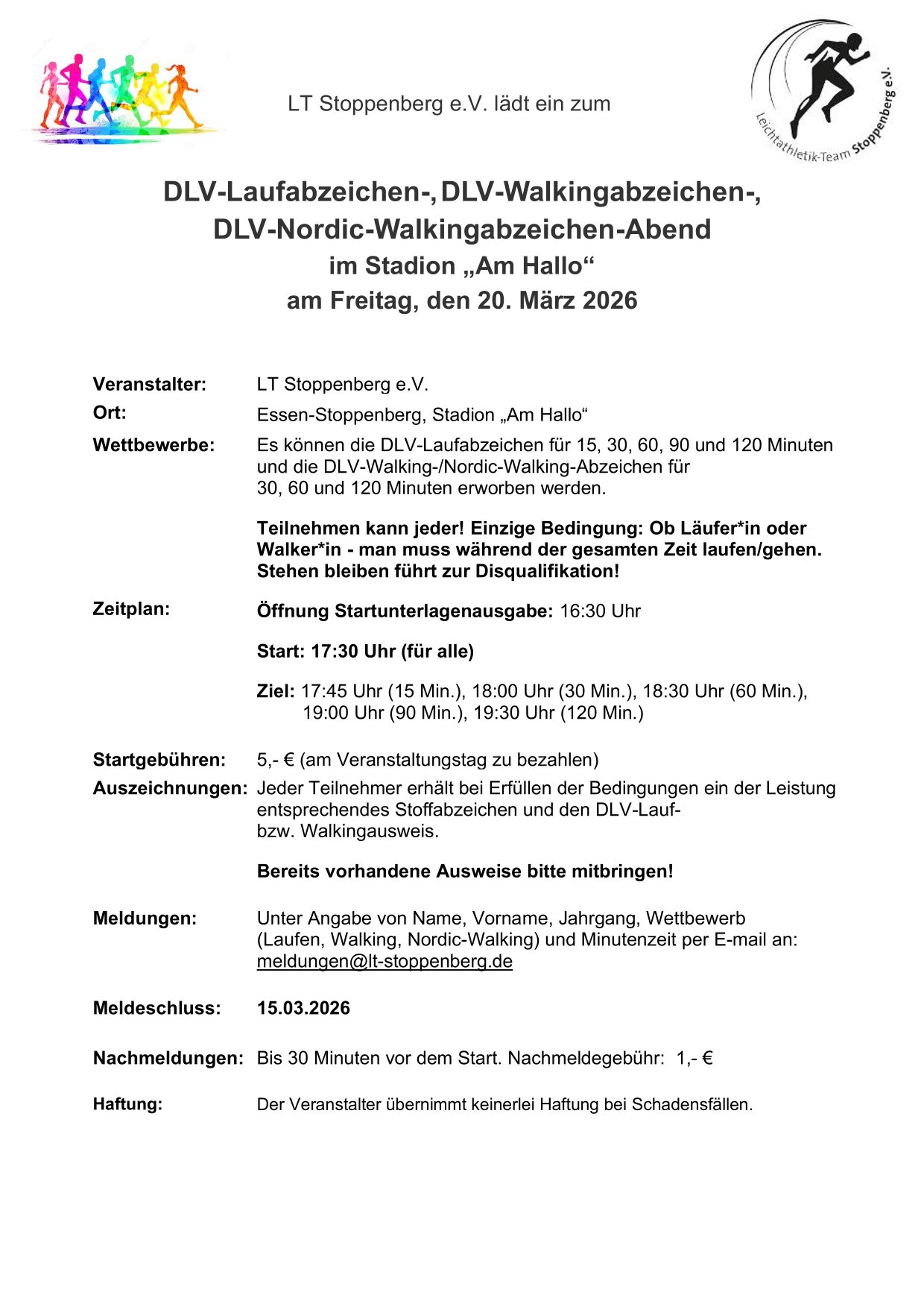 Die Ausschreibung als PDF zum Download gibts hier: Ausschreibung Laufabzeichenabend